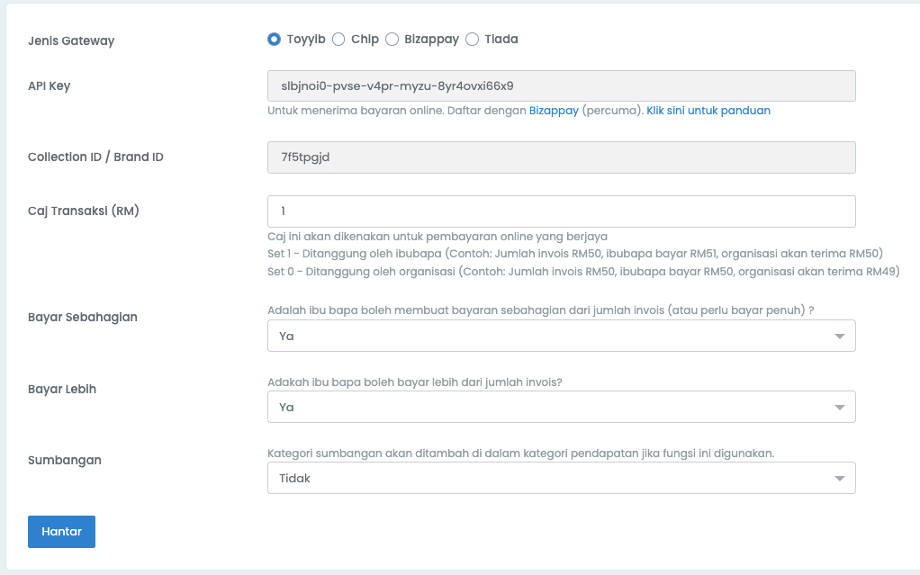 - Klik Hantar untuk save.